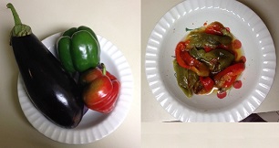 I made roasted peppers and eggplant with a little bit of olive oil.  What a lovely dish this turned out to be.